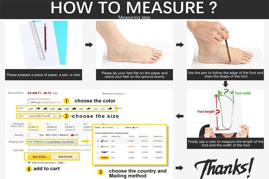 Check the size of the shoes before buying, measure the length that suits you, and then choose the shoes to buy: