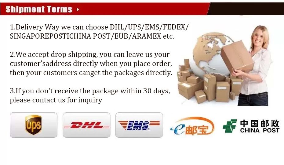 1.We ship by China post,DHL,Fedex,according to your choice when placing orders .